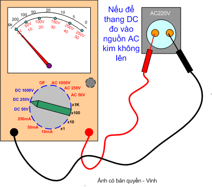 Để thang DC đo áp AC đồng hồ không lên kim tuy nhiên