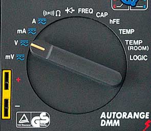 thang đo dòng điện hoặc thang đo điện trở khi ta đo điện áp một chiều (DC), nếu