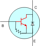 Minh hoạ ứng dụng của Transistor Digital * Ký hiệu : Transistor Digital thường có các ký hiệu là DTA...( dền thuận ), DTC...( đèn ngược ) , KRC...( đèn ngược ) KRA...( đèn thuận), RN12...( đèn ngược ), RN22...(đèn thuận ), UN...., KSR... . Thí dụ : DTA132 , DTC 124 vv... * Transistor công xuất dòng ( công xuất ngang ) Transistor công xuất lớn thường được gọi là sò. Sò dòng, Sò nguồn vv..các sò này được thiết kế để điều khiển bộ cao áp hoặc biến áp nguồn xung hoạt động , Chúng thường có điện áp hoạt động cao và cho dòng chịu đựng lớn. Các sò công xuất dòng( Ti vi mầu) thường có đấu thêm các diode đệm ở trong song song với cực CE.