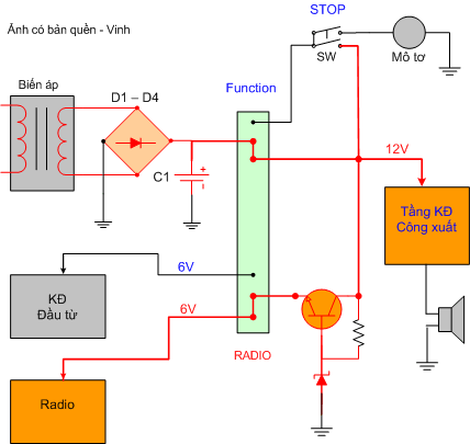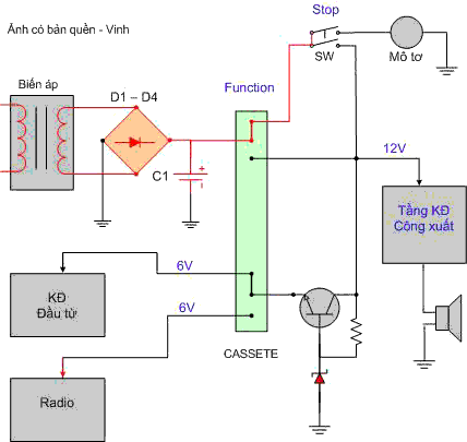 Sơ đồ mạch cấp nguồn của Radio - Cassette
