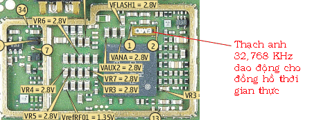 Mạch dao động bằng tinh thể thạch anh. Dao động tinh thể là một khái niệm cơ bản và quan trọng ngành linh kiện điện tử nói chung và công nghệ điện thoại nói riêng. Mọi sự hoạt động của xung nhịp, bus...trong điện thoại đều liên quan đến dao động tinh thể bởi đây là các tần số làm việc được sản sinh từ dao động tinh thể.