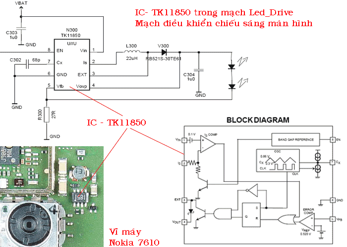 Các mạch Logic và IC khuếch đại thuật toán trong IC điều khiển mạch chiếu sáng màn hình, bàn phím máy Nokia 7610
