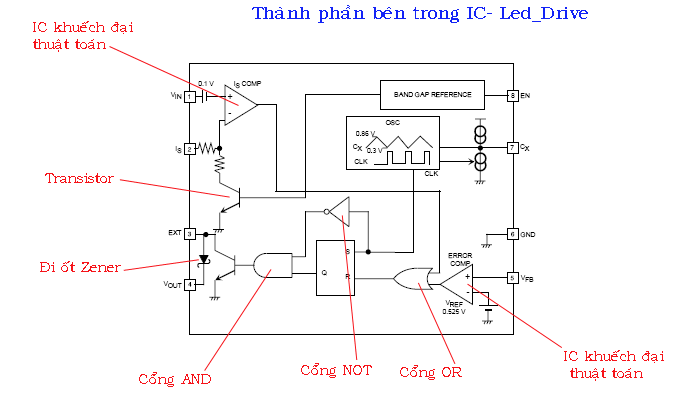 Hình ảnh thực tế của IC, sơ đồ mạch ứng dụng của IC, sơ đồ khối trong IC