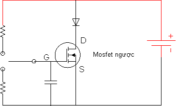 - Khi chân G được cấp điện dương thì Mosfet dẫn điện và đèn sáng. - Sau khi ngắt điện, do điện tích nạp vào chân G vẫn còn nên Mosfet vẫn tiếp tục dẫn và đèn vẫn sáng - Khi đóng chân G xuống Mass điện tích ở chân G bằng 0 nên đèn tắt