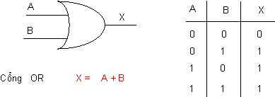 Cổng OR có giá trị logic ra bằng tổng các giá trị logic vào, chỉ cần một đầu vào có giá trị bằng 1 thì đầu ra có giá trị bằng 1