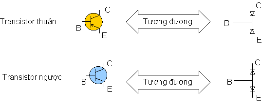 Phương pháp kiểm tra Transistor trên mạch - Để đo Transistor bạn hãy xem sơ đồ tương đương sau đây.