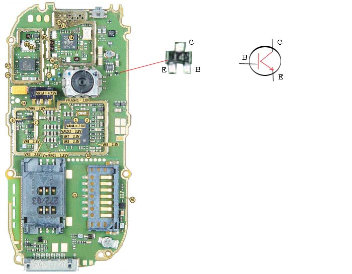 Ký hiệụ - Trên các sơ đồ nguyên lý, Transsistor có ký hiệu là Q hoặc V , ví dụ V401