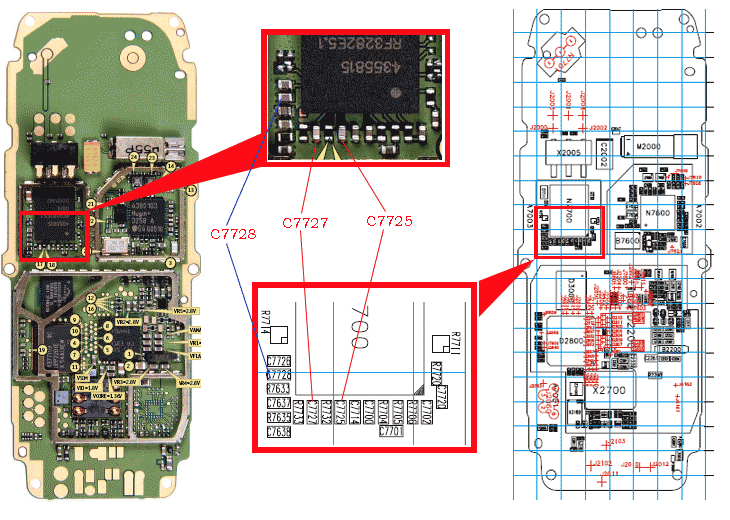 Phương pháp kiểm tra tụ điện trên mạch - Các tụ điện trên điện thoại khi bình thường chúng có trở kháng bằng vô cùng (R = ∞ ) vì vậy nếu bạn kiểm tra trở kháng của tụ thấy có trở kháng thấp là biểu hiện của tụ bị dò, nếu R = 0Ω là tụ bị chập - Tụ điện có tỷ lệ hỏng rất ít, nhưng khi tụ đã bị hỏng thường gây ra những bệnh về chất lượng nên rất khó xác định để kiểm tra sửa chữa. - Để đo tụ điện, bạn để đồng hồ ở thang 1KΩ đo vào hai đầu tụ, đo hai chiều và tính theo chiều có trở kháng cao hơn, nếu tụ có trở kháng lớn là được, nếu trở kháng nhỏ thì bạn cần tháo hẳn ra khỏi mạch để đo, khi tháo ra ngoài thì trở kháng của tụ bằng vô cùng.