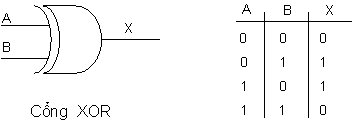 Cổng loại trừ có đặc điểm, khi nào hai tín hiệu vào khác nhau thì đầu ra có giá trị 1, khi các đầu vào giống nhau thì đầu ra có giá trị 0