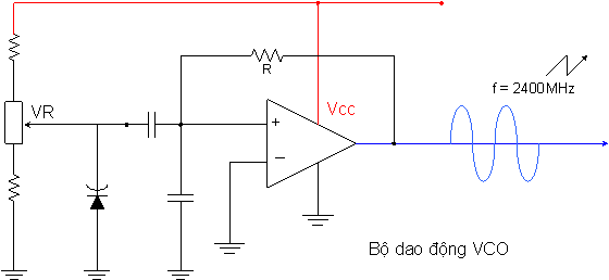 Bộ dao động VCO (Voltage Control Oscilator) dao động điều khiển bằng điện áp Trong bộ dao động VCO người ta sử dụng Đi ốt biến dung để tạo dao động, khi điều chỉnh cho điện áp ngược rơi trên đi ốt thay đổi > giá trị điện dung thay đổi > dẫn đến tần số dao động thay đổi.