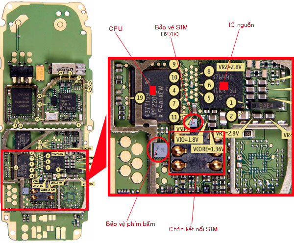 Nhận biết các linh kiện của khối điều khiển trên máy Nokia