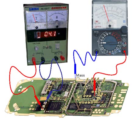 Xác định 3 điện áp khởi động của máy Nokia 1110i là: