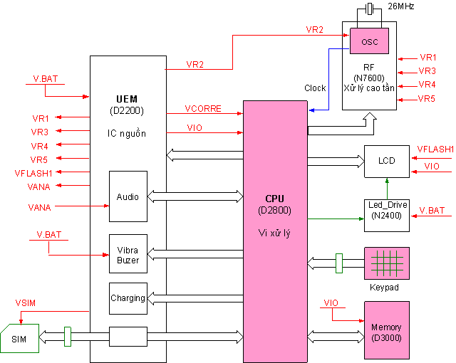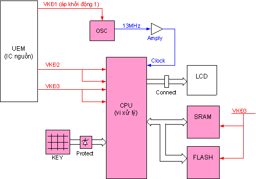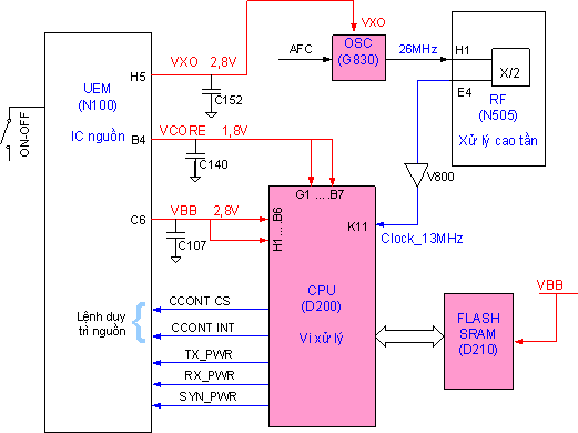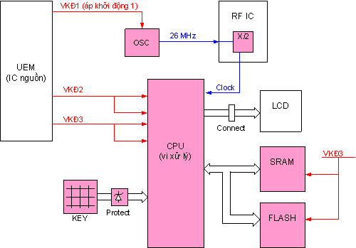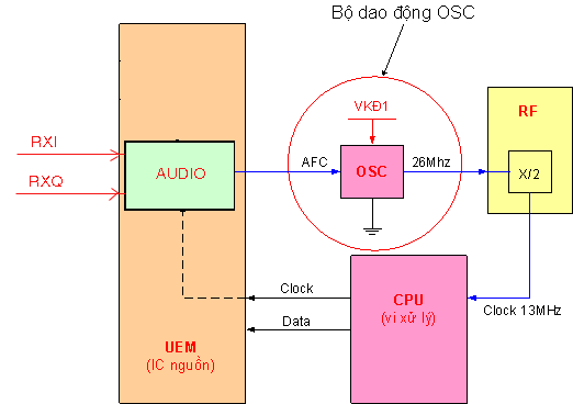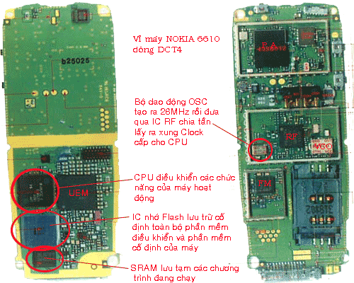 Khối vi xử lý trên các máy Nokia có xung Clock đi qua IC RF để chia tần