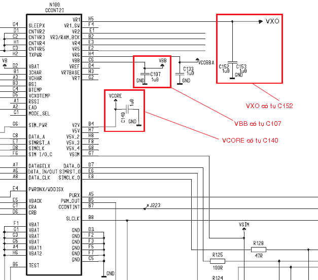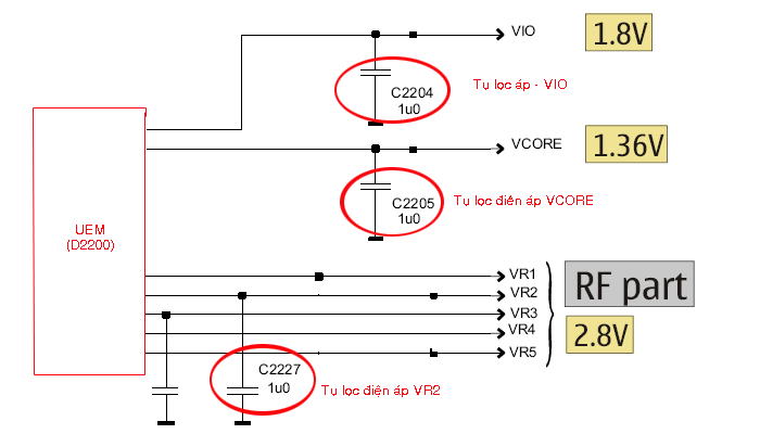Xác định tên tụ lọc trên các đường điện áp VR2, VIO và VCORE