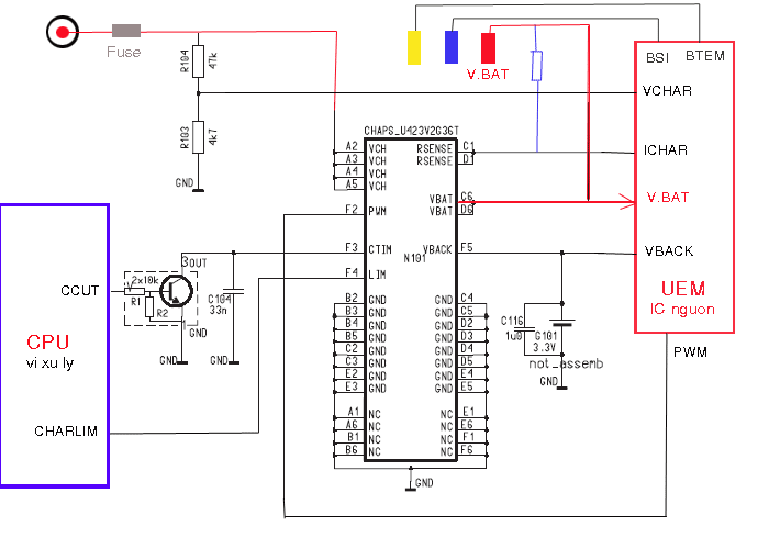 - Nếu nguồn không tốt nghĩa là có thể bị chập V.BAT hoặc mất dòng khởi