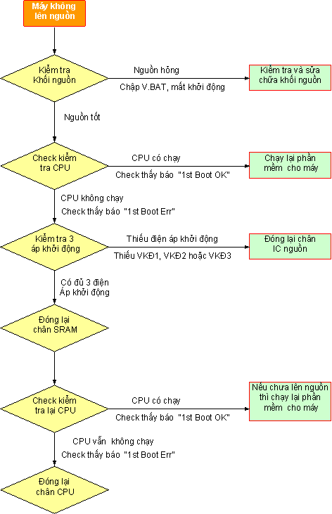 lên nguồn và phương pháp kiểm tra sửa chữa