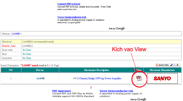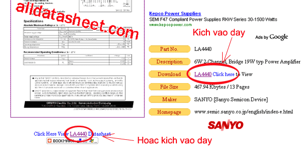 Bạn hãy nhập ký hiệu LA4440 vào ô tìm kiếm ở trên rồi Enter, trang web sau sẽ hiển thị :